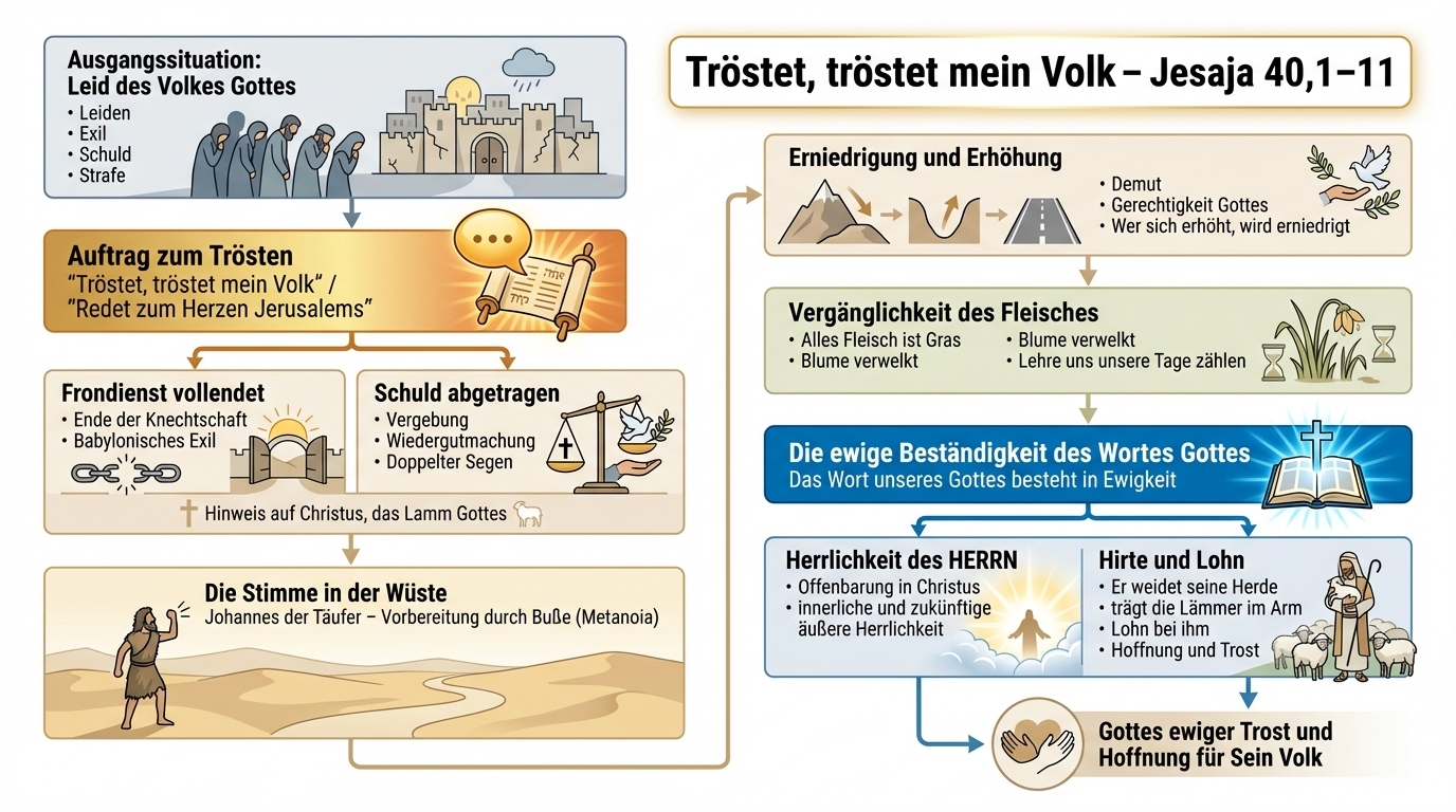 In Jesaja 40 werden Menschen von Gott aufgefordert, das Volk Gottes zu trösten (Jes 40:1). In den Versen 1–11 heißt es dann: